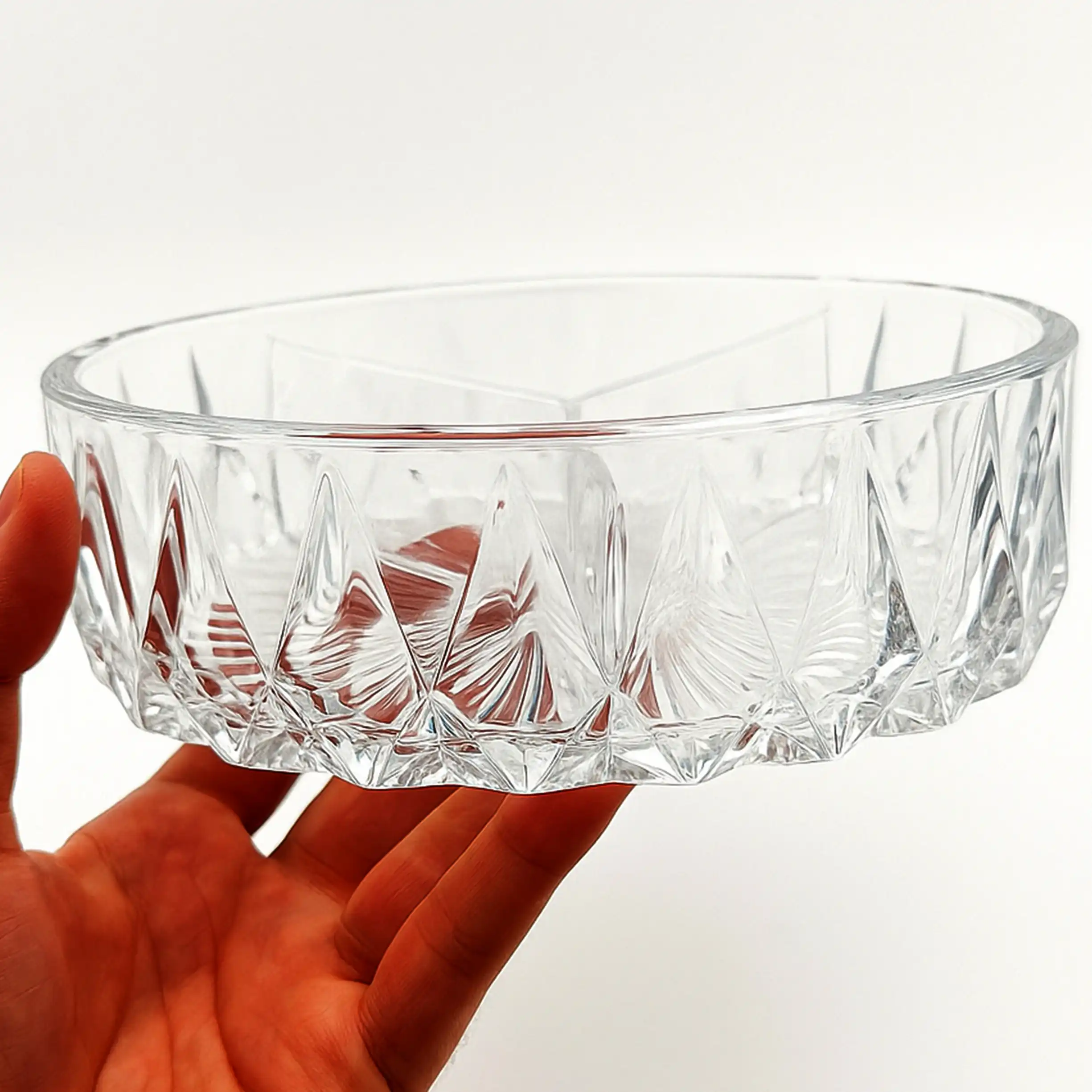 این محصول با طراحی زیبا، تراشدار و الهامگرفته از ظروف کریستال لوکس، جلوهای خیرهکننده روی میز پذیرایی ایجاد میکند، در حالی که به دلیل جنس اکرولیک مقاوم، نشکن، سبک و بسیار بادوام است.