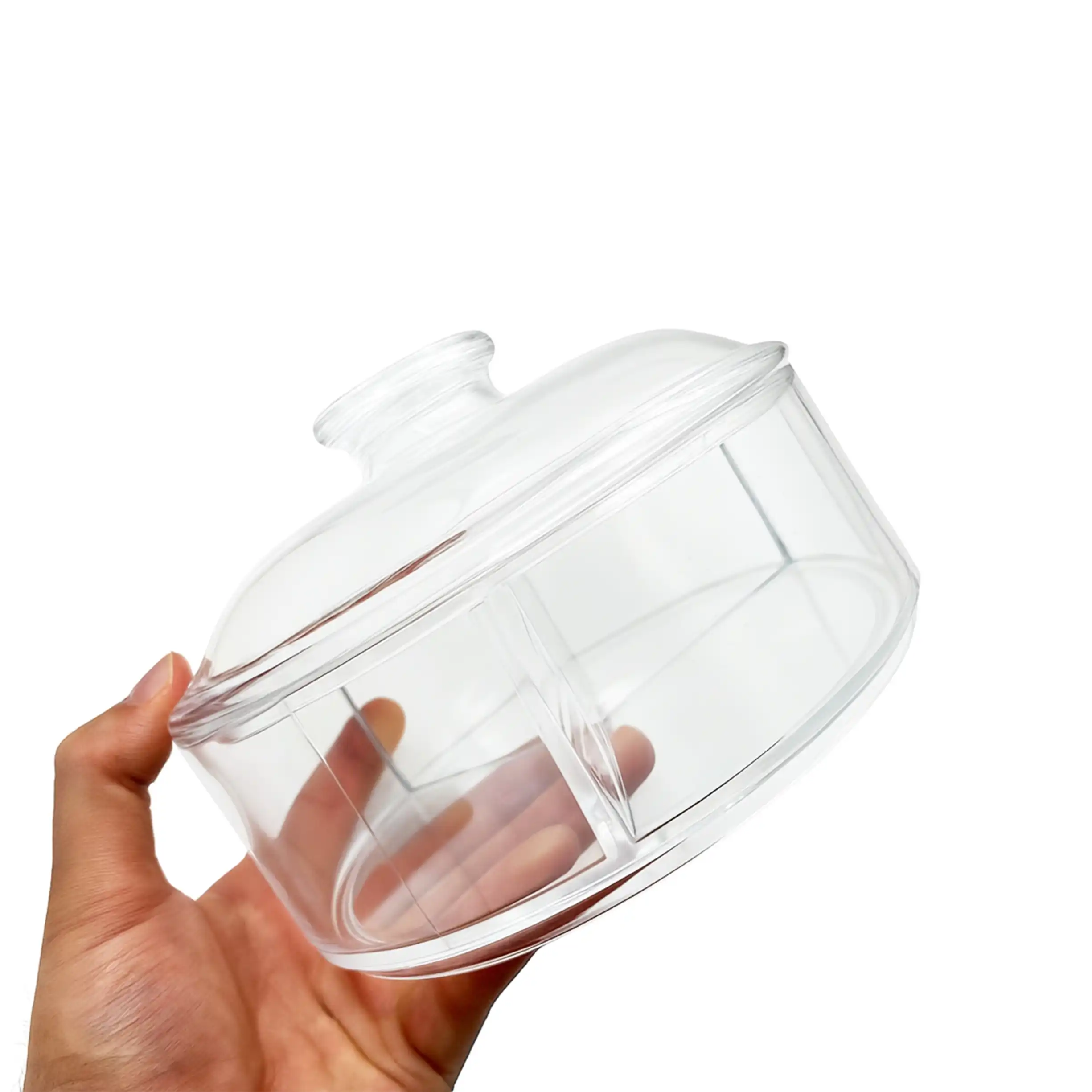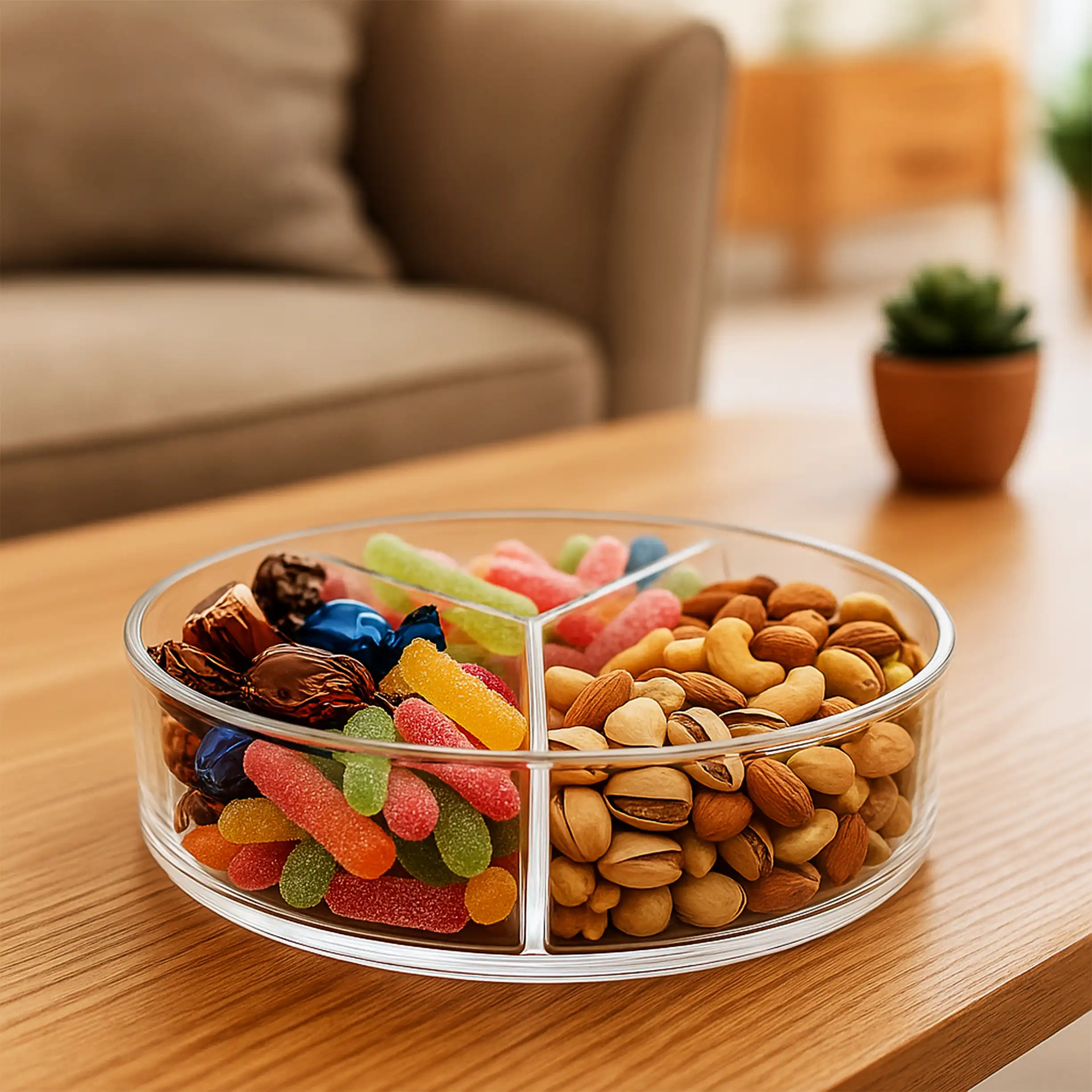 ظرف پذیرایی گرد سه‌خانه اکرولیک؛ انتخابی شیک، مقاوم و چندمنظوره برای هر مهمانی
